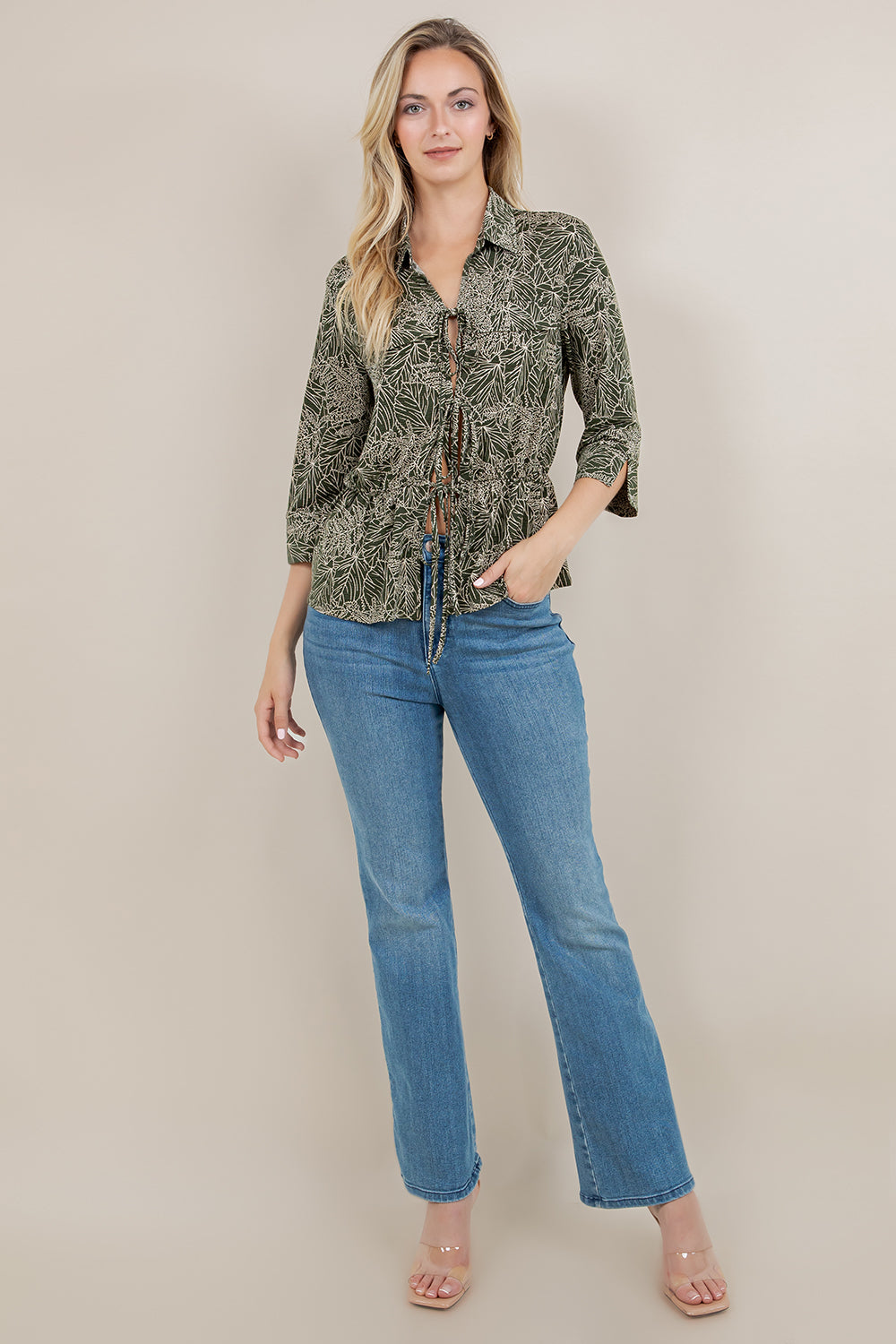 3/4 SLV COLLARED DRAWSTRING TOP T11724-A5177
