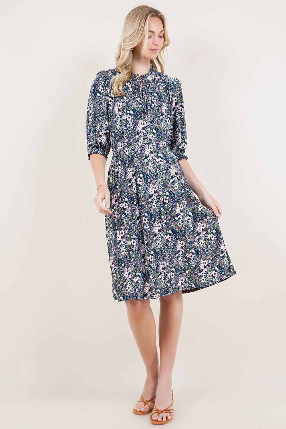 ELBOW LENGTH KEYHOLE NECKLINE DRESS - D3162-96430-40-JQITY