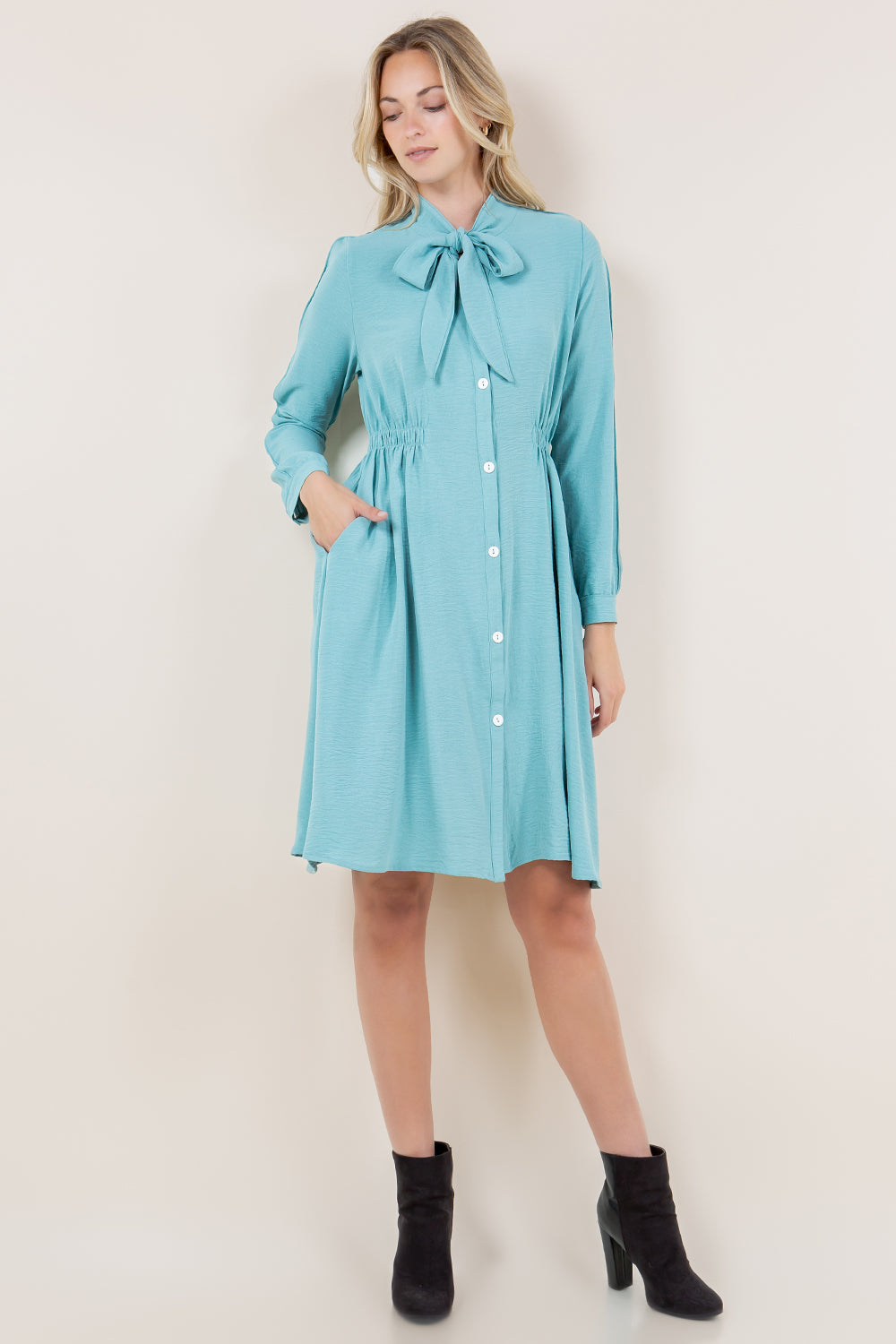 LS BOW TIE NK BUTTON FRONT DRESS - D3531-AFLW-ALOE