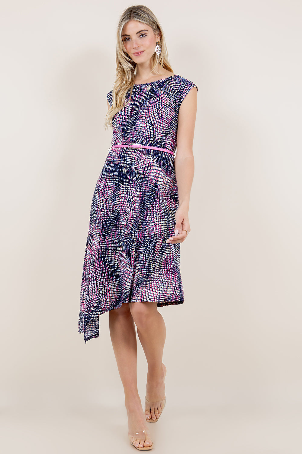 JACQUARD ITY Pink and purple print sleeveless round-neck bias dress with belt.